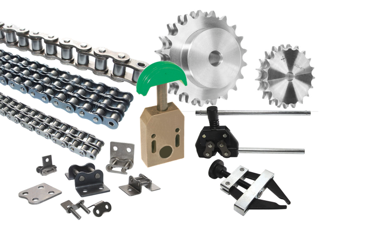 Chaines normes ASA, ISO, simples, doubles, triples, chaines de manutention série légère et lourde, chaines inox. Pignons et disques : simples, doubles, triples. Pré-alésés ou alésés à dimensions, prédisposés pour moyeux amovibles.